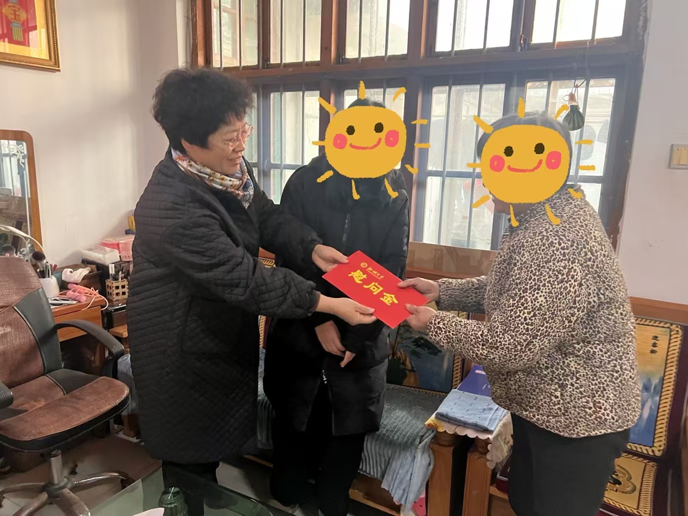 老师们与学生、家长促膝长谈,了解家庭经济状况,反馈学生在校表现。为切实缓解经济压力,给学生创造更好的学习条件,老师们送上慰问金与生活用品。交谈中,老师们为贫困家庭送上新年祝福,愿新的一年日子越过越红火,生活顺遂无忧,学生能在学业上不断进步。