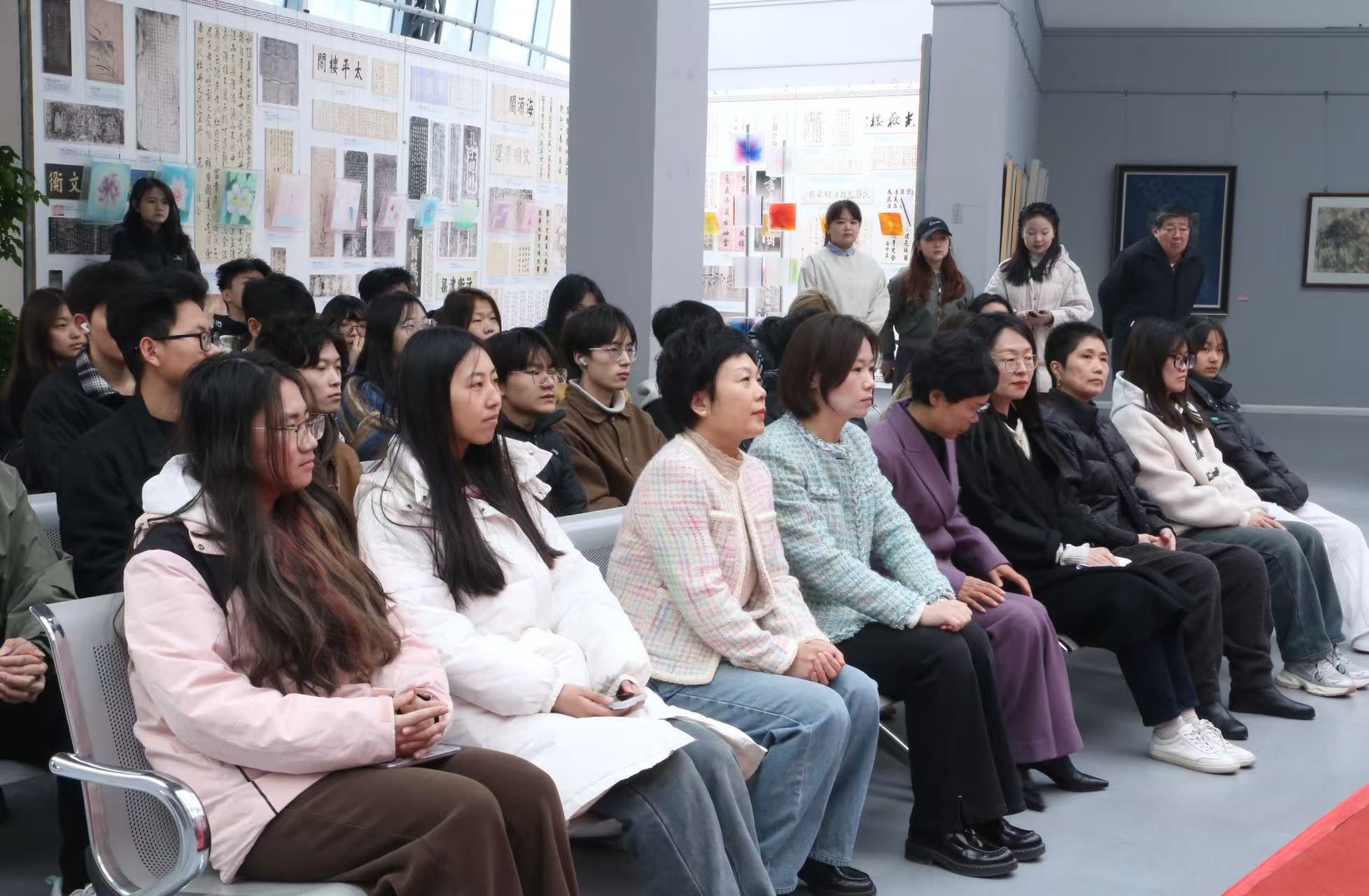 聊城市妇女联合会二级调研员尹保军,四虎 副院长史秀娜,聊城市妇女联合会宣传部部长孙晓靖,聊城市油画学会副主席、四虎 副教授张彬,四虎 杰出校友、聊城市妇女儿童活动中心主任李桂芝等领导,数名书画艺术家以及学生代表参加开幕式。