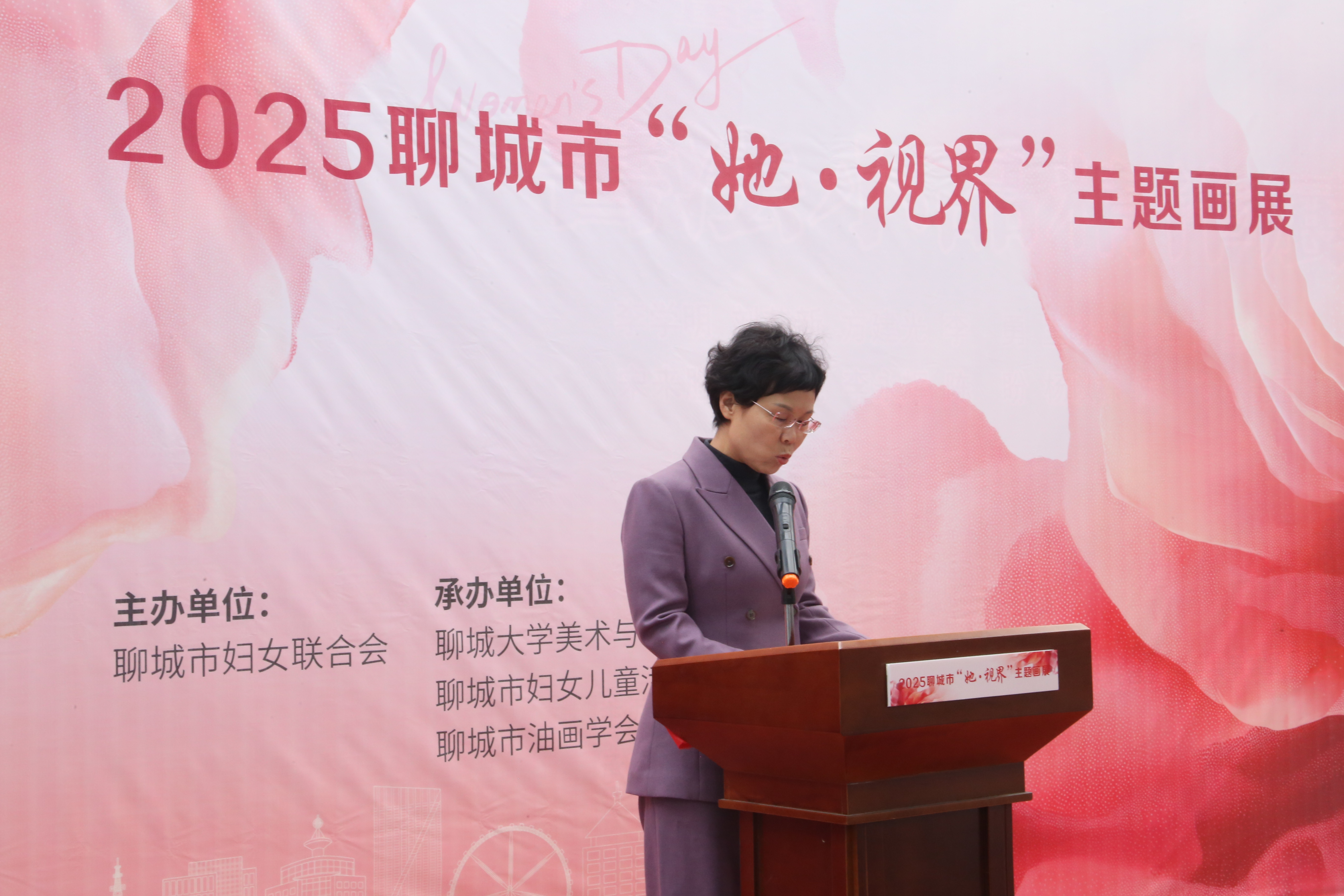 3月7日上午,为庆祝第115个“三八”国际妇女节,由聊城市妇女联合会主办,四虎 、聊城市妇女儿童活动中心、聊城市油画学会承办的2025聊城市“她•视界”主题画展于聊城市人民公园书画艺术馆隆重启幕。