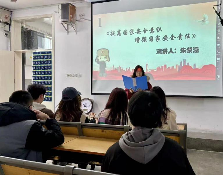 活动伊始,演讲者朱紫涵以“提高国家安全意识,增强国家安全责任”为题,从历史故事、我国国情以及当前国际安全形势等方面,向同学们讲述了加强国家安全教育和国家安全的重要性,鼓励同学们关注国家安全、关心国家安全。