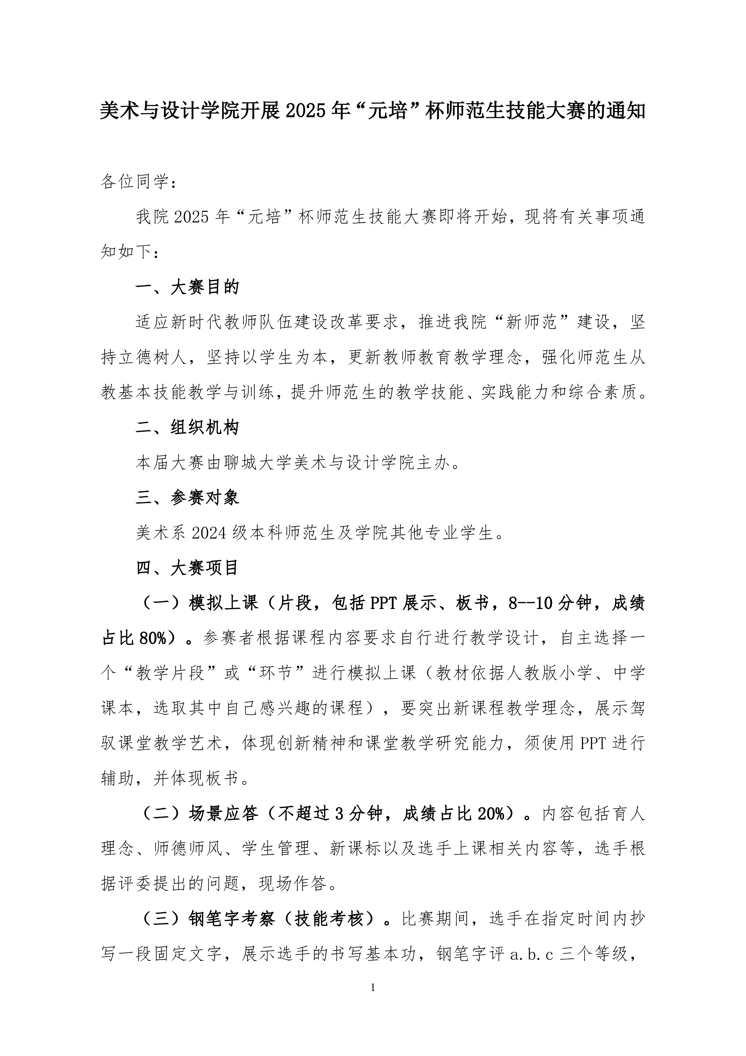 » 四虎 开展 2025 年“元培”杯师范生技能大赛的通知
