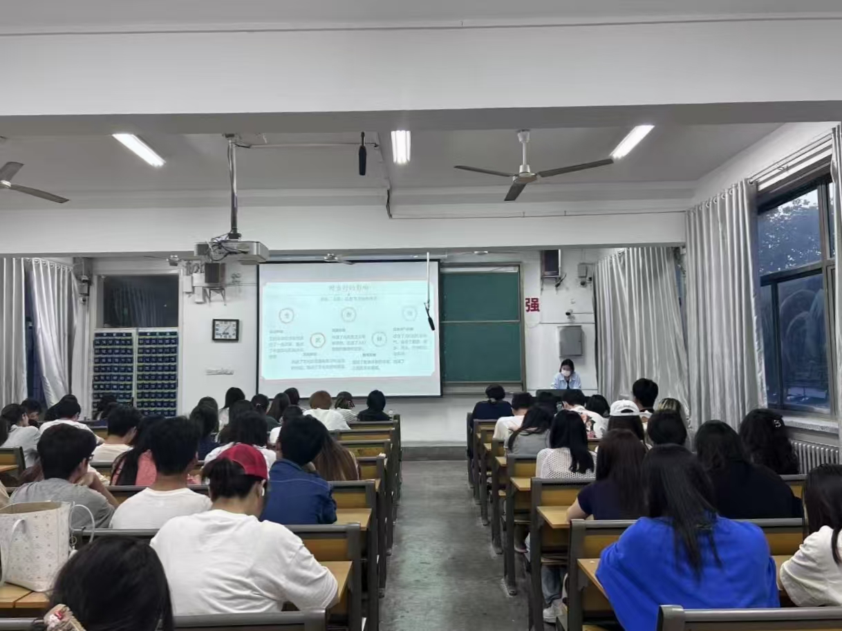 活动伊始,主讲人借助生动的PPT,从五四精神的背景、内涵及意义等方面展开讲解,引导同学们体会当时青年们的爱国情怀,增强对国家的认同感、民族的自豪感和历史的责任感。讲解过程中,主讲人还为同学们播放了与五四精神相关的视频,让大家身临其境,进一步体会五四精神的意义。在活动尾声,主讲人设计了知识竞赛环节,旨在提升同学们的参与度。竞赛题目围绕大家的共同兴趣设计,既活跃了气氛,又检验了同学们对五四精神知识的掌握程度。知识竞赛结束后,交流环节热烈展开,同学们围绕竞赛题目和观看的视频,就五四精神的理解展开热烈讨论。活动最后,大家合影留念。