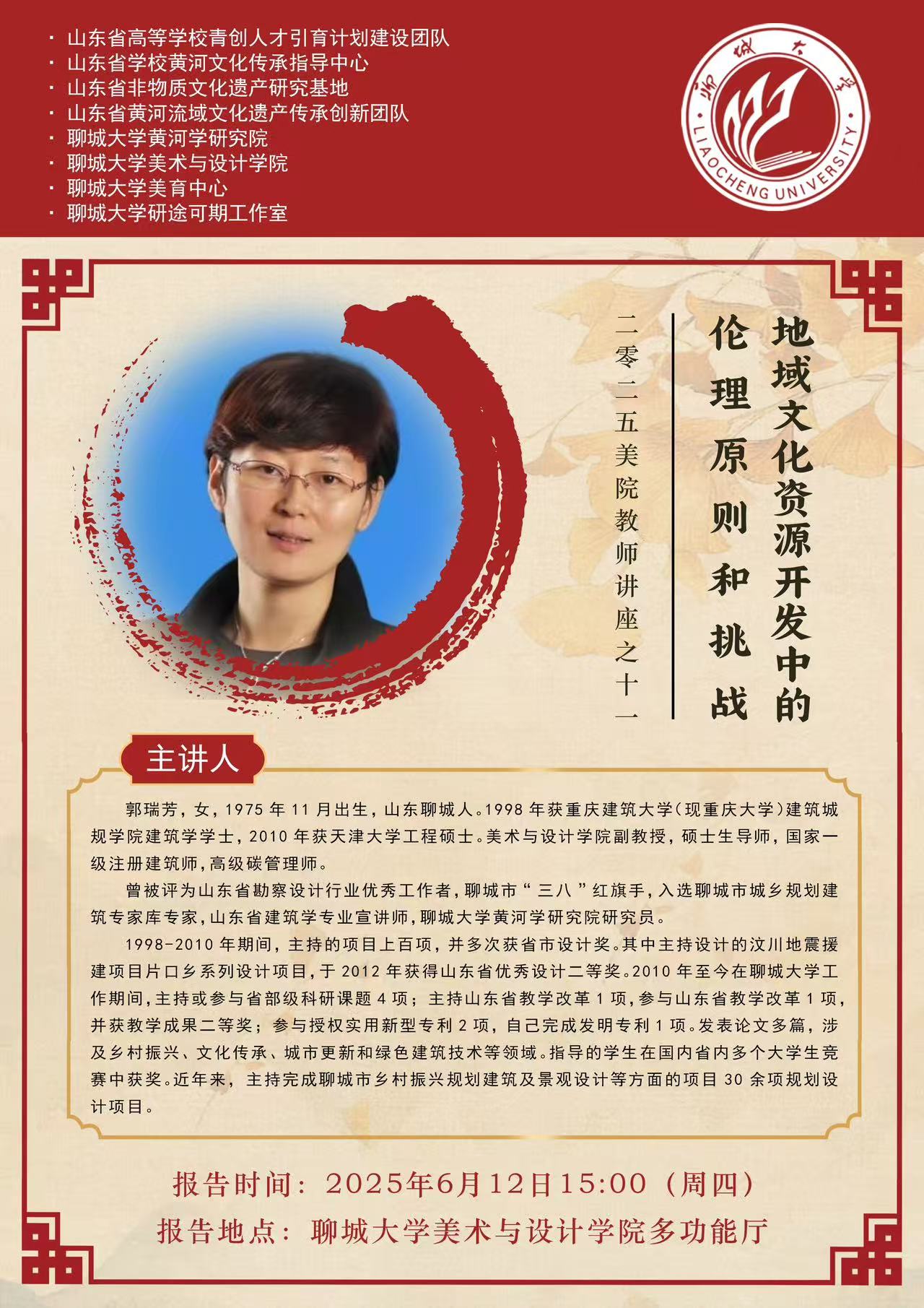 2025年6月12日,四虎 郭瑞芳老师于四虎 一楼多功能厅举办了《地域文化资源开发中的伦理原则和挑战》的专题讲座,为师生们呈现了一场极具深度与现实意义的学术盛宴。