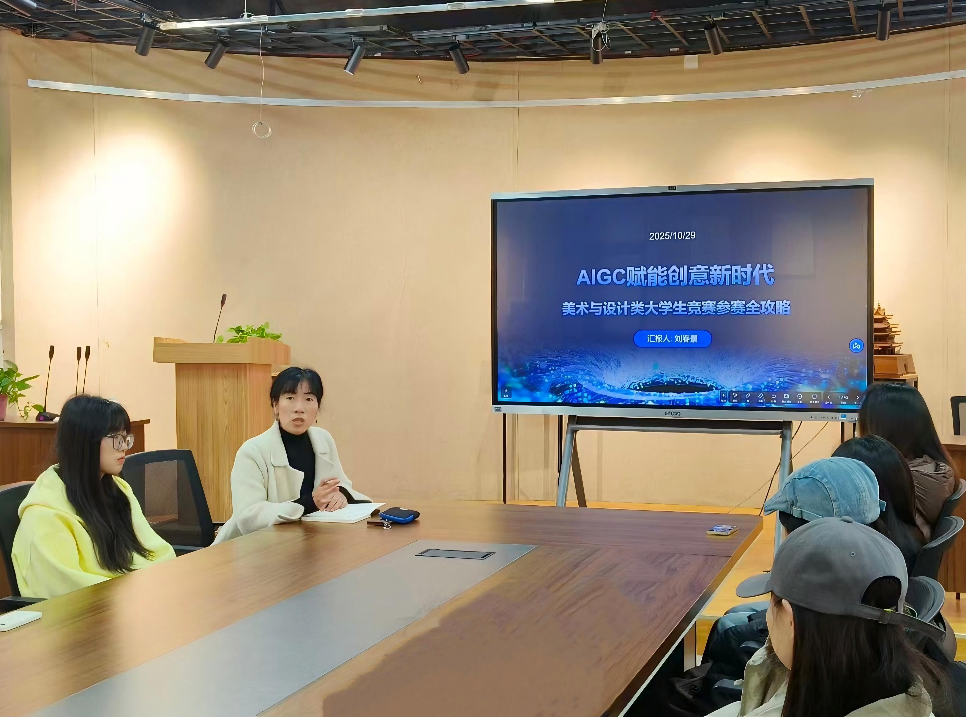 刘春景老师以《AIGC赋能新时代:美术与设计类大学生竞赛参赛全攻略》为题,带来关于2026年美术与设计专业大学生竞赛经验的分享,聚焦于如何在高水平竞赛中脱颖而出,并重点探讨一个革命性的工具——AIGC(人工智能生成内容)如何为创意设计赋能。