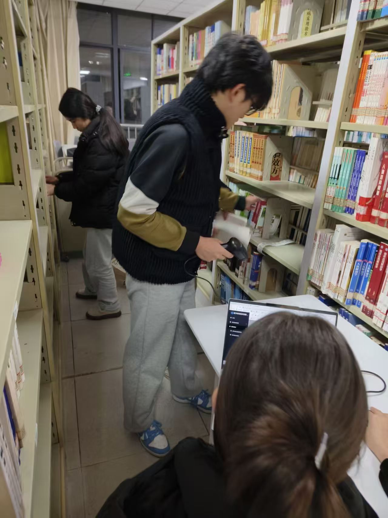 活动伊始,图书馆工作人员向志愿者们详细介绍了馆藏布局、图书分类规则及索书号的具体含义,系统讲解了图书从入库、分类、编目到上架的完整流程,确保志愿者们熟练掌握操作规范。志愿者们认真聆听、仔细记录,将每一个操作要点牢记于心。培训结束后,志愿者们迅速投入到紧张有序的图书整理工作中,大家分工明确、配合默契,有条不紊地开展各项工作:将散乱摆放的书籍按照索书号精准归位,细心擦拭书架上的灰尘,对归还的图书进行分类、扫码、上架,全程一丝不苟。过程中,志愿者们手持扫描枪,逐一对书籍信息进行核对,耐心排查每一处细节,确保每一本书都能准确“回家”。活动结束后大家纷纷表示,在亲身参与劳动、服务他人的过程中,更深刻体会到了珍惜书籍、爱护公共资源的重要性,感受到了奉献的快乐与服务社会的价值。