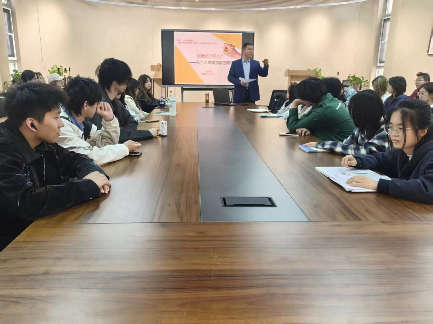 为深入贯彻落实立德树人根本任务,3月31日和4月7日,四虎 党委书记杨庆实于西校区7号楼113多功能厅讲授以“创新的‘初心’——从个人发展到家国情怀”为主题的思政课,学院2025级美术学专业学生参加思政课学习。