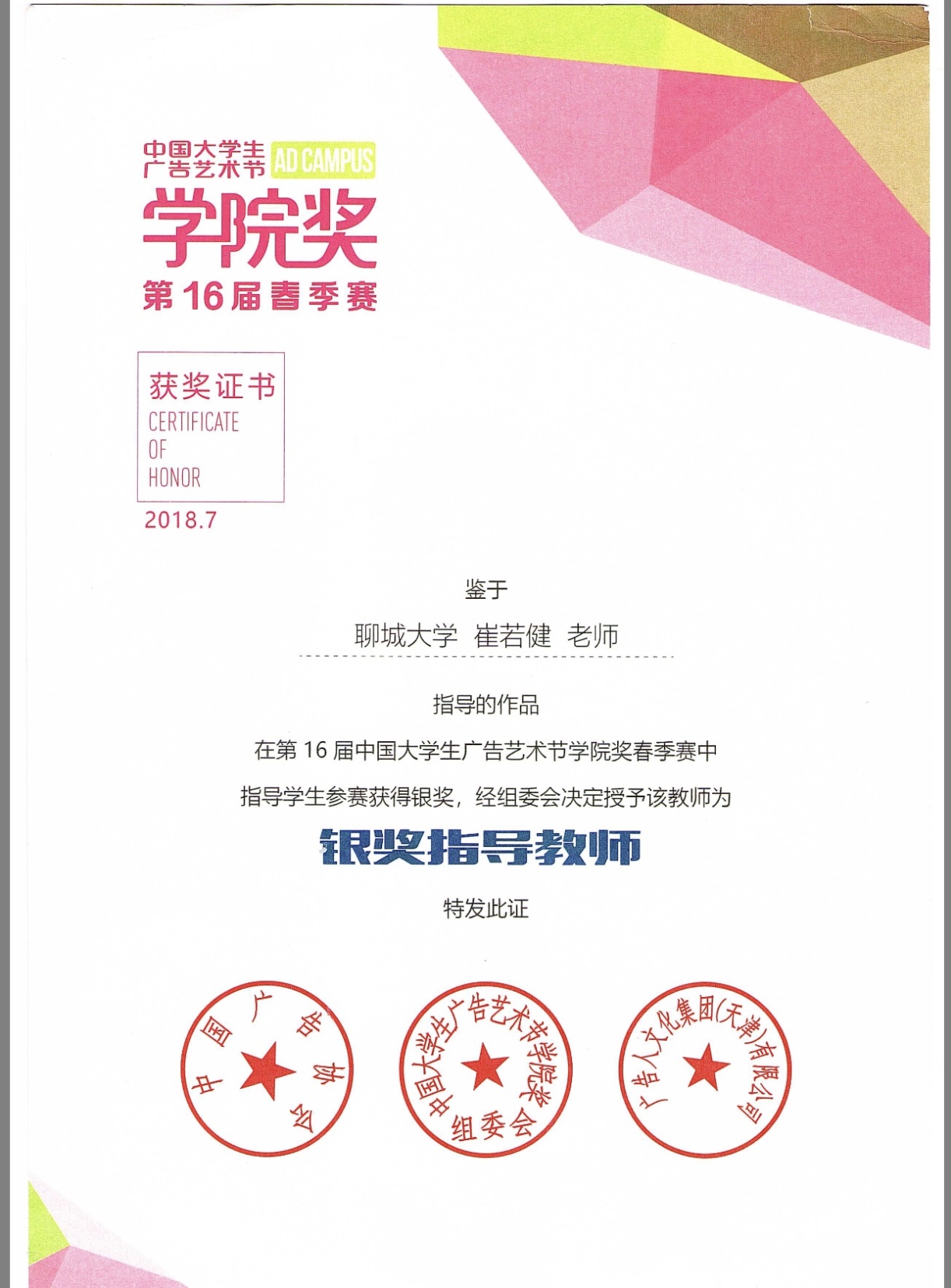 主持山东省社科规划项目、教育部协同育人项目、山东省教育科学规划重点课题、四虎 社科项目、四虎 教改项目各1项,参与省社科、省教育科学规划重点课题、省一流课程建设、四虎 科研教研课题、金课建设20余项;在《美术观察》、《装饰》、《艺术百家》、《包装工程》等学术刊物发表论文十余篇;获得山东省文化艺术科学优秀成果奖二等奖、四虎 优秀教学成果二等奖、四虎 优秀科研成果二等奖、全国高校艺术与设计作品展评教师组教研成果一等奖、山东省高校美术与设计专业师生基本功比赛二等奖、中国华东大奖设计艺术展优秀奖等学术和专业竞赛奖多项;获中国大学生广告艺术节学院奖银奖指导教师奖、全球华人学生“时报金犊奖”优秀指导教师奖、山东省大学生科技节优秀指导教师奖多项。