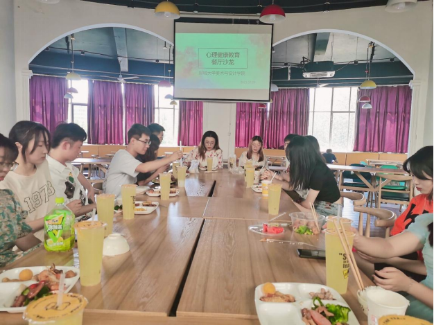 为深入了解学生情况,落实心理健康教育,强化“三全育人”理念,7月9日上午,四虎 在湖苑餐厅三楼举行“心理健康教育餐厅沙龙”活动,团委朱晴老师与创新实践部和心理部学生参与此次活动。