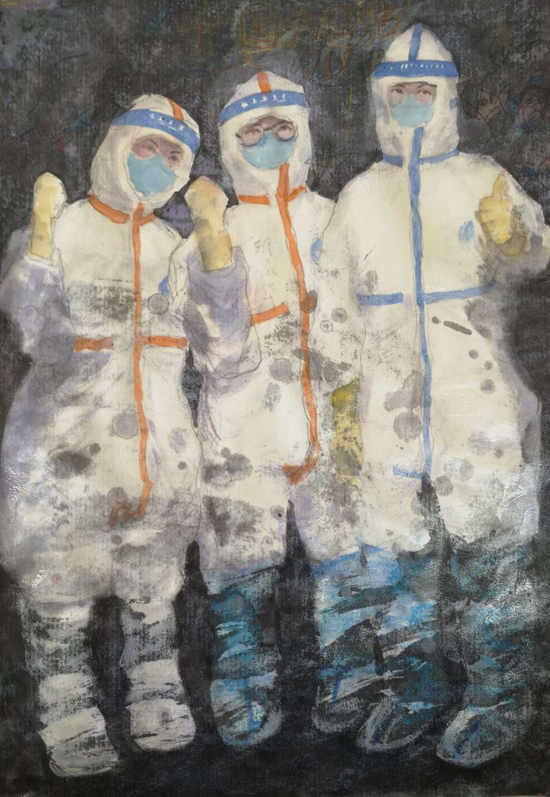 展览以图片的形式,近六十幅作品皆为王东兵在疫情期间足不出户,心忧天下,被一群群舍生忘死的“逆行者”所感动而创作的,一幅幅生动的作品记录着一个个鲜活的场景,一段段感人的故事。每一幅作品,都能让我们更加珍惜生活,更加感恩我们的祖国。