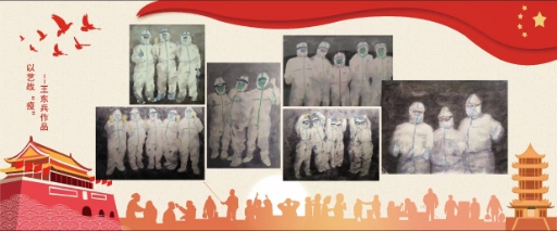 2020年9月15日,由四虎 主办的“以艺战‘疫’--王东兵作品展”在四虎 西校区(4号教学楼前)宣传栏展出。作品以2020年伊始爆发新冠肺炎疫情后,全国数以万计的白衣天使、人民解放军、公安干警逆向而行,主动奔赴战场,奋战在抗疫最前线;一支支突击队日夜奋战在科研攻关、医院建设、物资生产的第一线,及时建立起了抗击疫情的生命线;以及广大的基层公务人员、社区工作者组成一批批志愿者队伍勇毅前行,穿梭在乡间街头,坚守在社区卡口,顶风冒雪筑起了保护群众的屏障的事迹等为题材,用画笔记录了“门神系列”“白色长城系列”“蓝色长城系列”“居家运动系列”“离校时刻系列”等战“疫”题材作品。