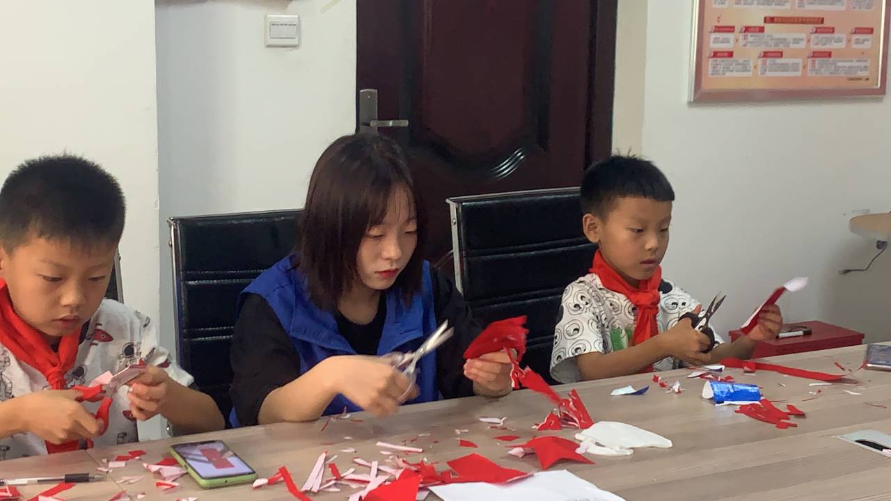 志愿者为使活动顺利进行,组织人提前准备好剪刀、剪纸所需用品及关于十九届五中全会的剪纸图案。参与人员熟悉活动流程,保证当天活动顺利进行。志愿者先给孩子们讲解剪纸的历史文化以及重大意义,让孩子们初步了解这一文化。接下来,给孩子们展示了剪纸种类,每个孩子按照自己喜欢的剪纸类型进行折叠、绘制。由于担心孩子们的安全问题,剪红纸这一环节由志愿者们代为剪裁,和小朋友们一起粘贴。经过一小时的创作,充满了生机的剪纸画面展示在大家面前,尽管小朋友的剪纸作品有些稚嫩,但是他们都通过独特的表现形式,展示出了自己独一无二的作品。孩子们与志愿者们一起动手,全神贯注。在轻松愉快的环境中剪出了一幅幅形象逼真、生动活泼的作品,表达了对党和祖国的祝福。活动结束后,志愿者们与孩子们合影留念并对活动场地进行清理。