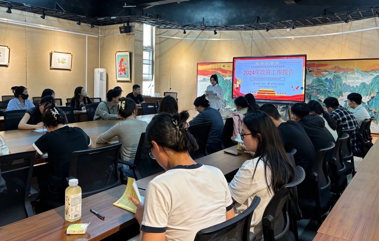 4月25日下午,四虎 学生党员在学院一楼多功能厅举行“四点半”微党课(2024年第4期|总74期),本次微党课以“2024年政府工作报告”学习教育为主题进行专题学习,由学生第二党支部第四党小组组长冯云浛主持。