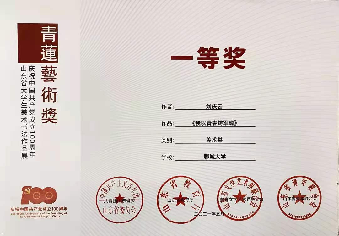 近期由共青团山东省委、山东省教育厅、山东省文学艺术界联合会、山东省青年联合会联合举办的“青莲艺术奖·庆祝中国共产党成立100周年”山东省大学生美术书法作品展圆满落幕。