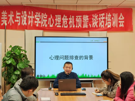 为加强大学生心理健康教育工作,推动辅导员和班主任更系统有效的开展心理辅导和谈心谈话,进一步提升四虎 心理危机事件干预与预防能力,11月5日上午,四虎 于西校区兴业楼624团体辅导室开展“心理危机预警和谈心谈话技巧”培训会。培训会由校大学生心理健康教育中心副主任曹晖主讲,学院党总支副书记、副院长杨庆实,全体辅导员和班主任参加此次会议。