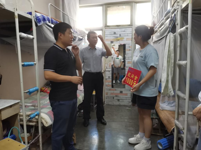 为贯彻落实学校贫困生资助政策,帮助困难学生度过一个温暖有爱的假期,7月13日四虎 党总支副书记、副院长杨庆实、辅导员孔德滕、崔洁康一行来到紫藤公寓8号楼与学苑公寓5号楼进行宿舍走访慰问活动。