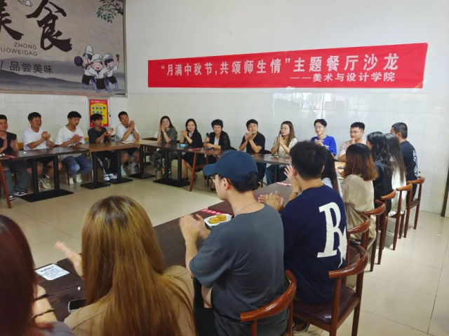 9月9日,四虎 于雅苑三楼举办“月满中秋节,共颂师生情”主题餐厅沙龙活动。学院党委副书记孙研红带领全体辅导员参加此次活动,2022级新生代表、军训教官、班主任助理共同参与。共同庆祝中秋佳节。
