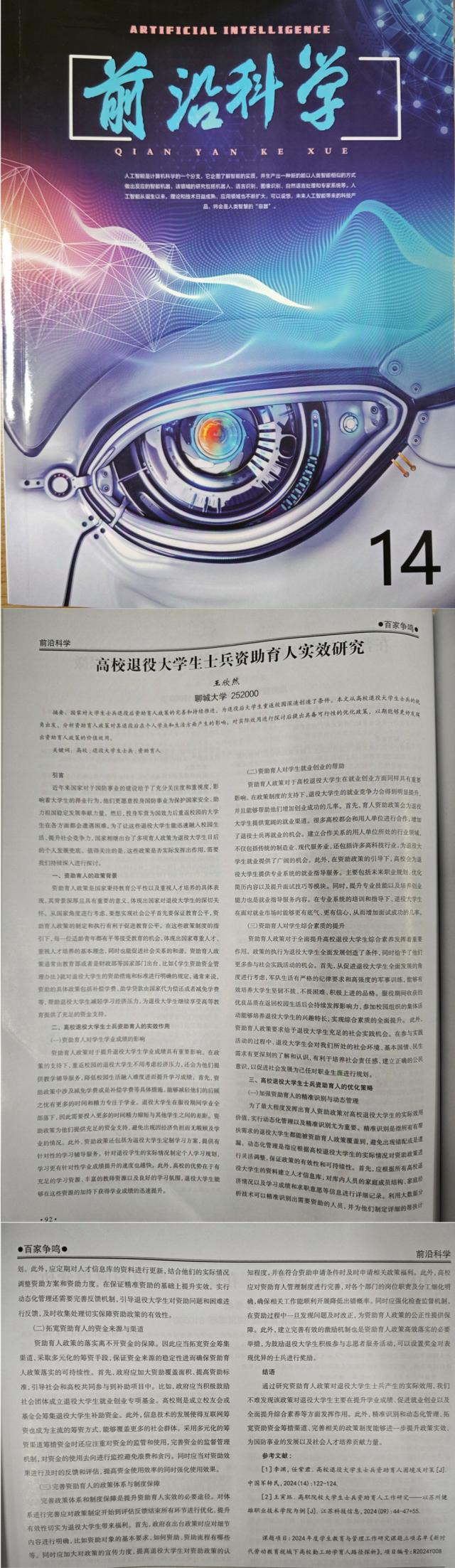 资助论文丨四虎 教师在期刊发表一篇有关资助育人实效的文章 作者:张琪 来源:四虎 发布时间:2024-11-30 阅读次数: 11月,四虎 辅导员王欣然在《前沿科学》发表一篇名为《高校退役大学生士兵资助育人实效研究》的文章。 文章从高校退役大学生士兵的视角,分析资助育人政策对其退役后在个人学业和生活方面产生的影响,对实际效用进行探讨后提出具备可行性的优化政策,以期能够更好发挥出资助育人政策的价值效用。 (审核 孔德滕)
