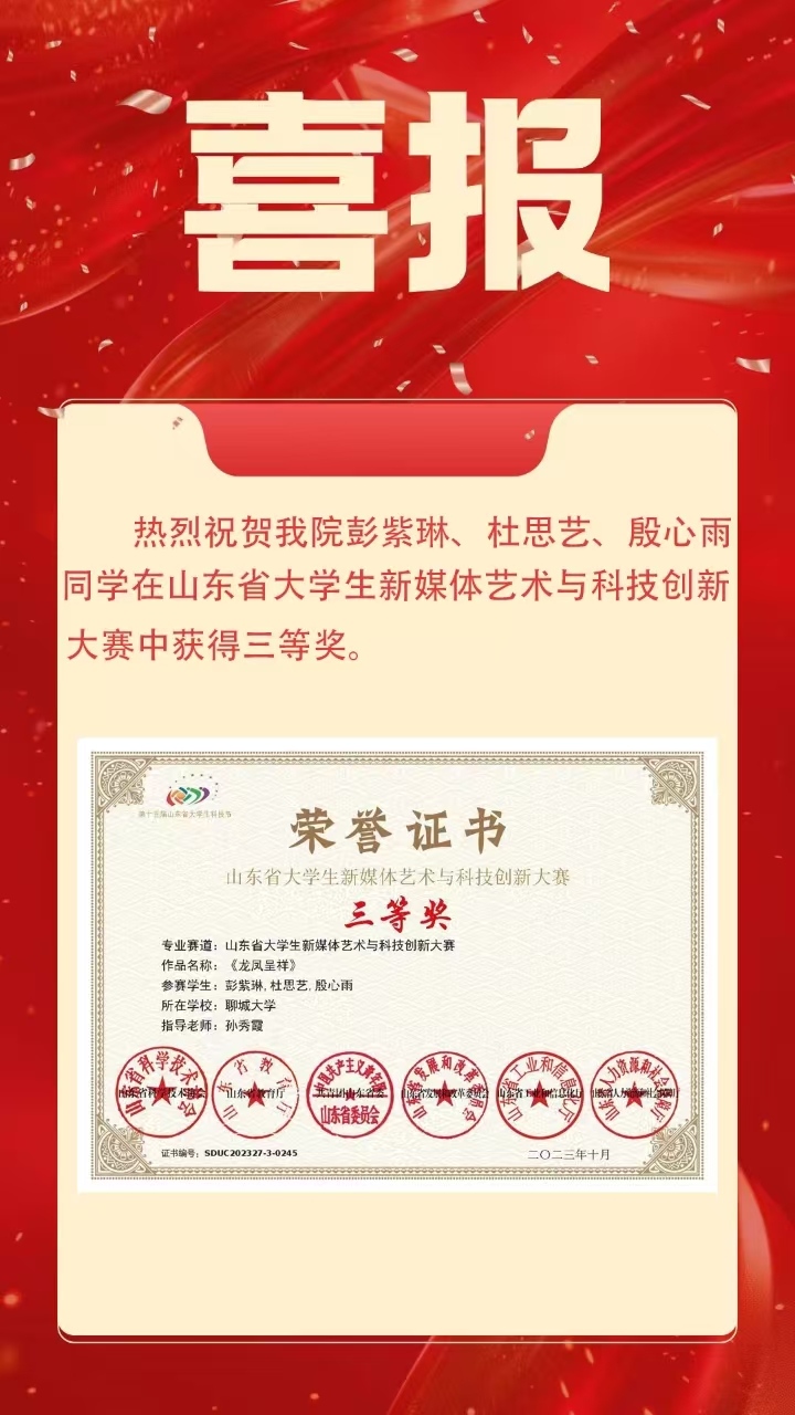 » 喜报|四虎 学子荣获山东省大学生新媒体艺术与科技创新大赛三等奖