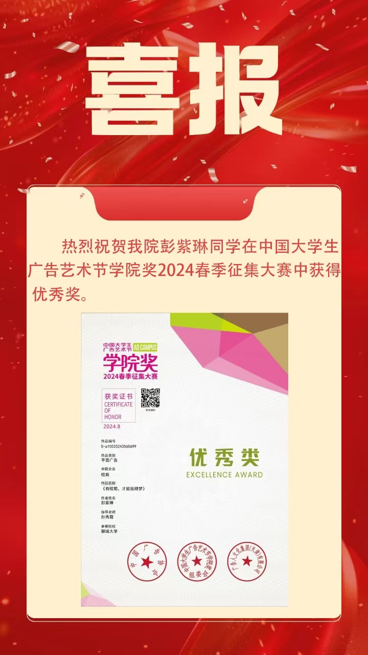 喜报|四虎 学子荣获中国大学生告艺术节学院奖2024春季征集大赛优秀奖