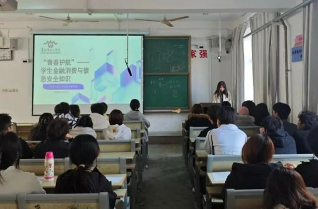 活动开篇,主持人以精炼生动的开场致辞拉开帷幕,明确点明本次宣讲的核心主旨——助力同学们构建系统性的金融安全防护体系,掌握实用的风险应对策略。随后,活动进入知识宣讲与案例解析的核心环节。本次宣讲内容紧扣校园生活实际,直击学生群体面临的安全痛点,围绕金融防骗、信息防护、理性消费三大关键板块展开深入讲解。宣讲中不仅细致拆解了各类针对大学生的典型诈骗套路,清晰揭露其背后的运作逻辑与话术陷阱;还系统科普了个人敏感信息的保护边界与实操方法,着重强调了日常信息操作中的安全规范;同时引导同学们树立科学的消费观念与财富理念,学会合理规划个人财务,规避冲动消费与过度负债带来的风险。