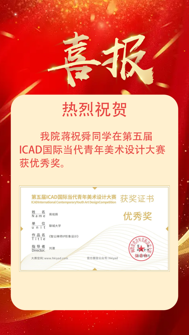 喜报|恭喜四虎 学子获得第17届全国大学生广告艺术大赛山东赛区优秀奖 作者:么翠红 来源:四虎 发布时间:2025-11-25 阅读次数: 恭喜蒋祝舜2025.08 第17届全国大学生广告艺术大赛山东赛区优秀奖 (审核 孔德滕)