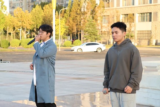 最后,音乐与舞蹈学院学生代表裴子勋、徐利恒演唱《追寻》,表达了新时代的中国青年,生逢其时、重任在肩,对祖国无比热爱,坚定理想信念,追逐梦想,砥砺前行。