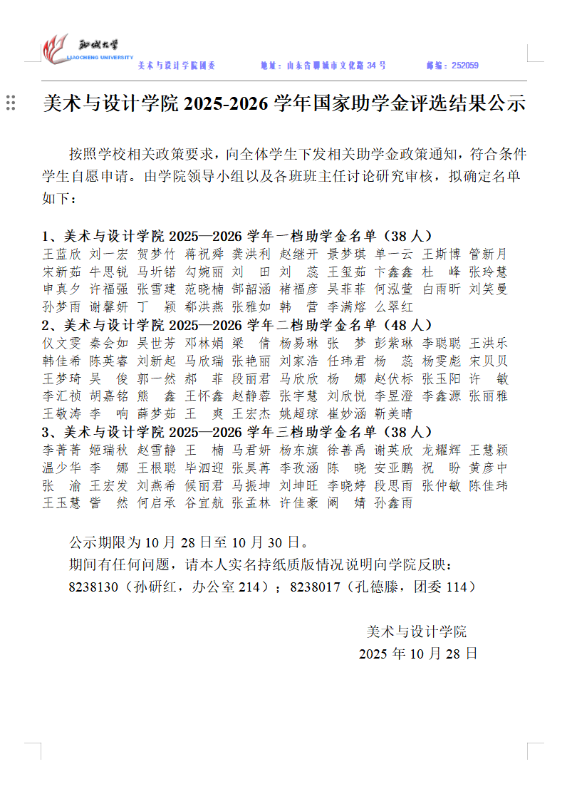 四虎 2025-2026年度助学金名单公示