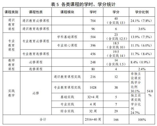 八、各类课程的学时、学分统计(见表 5)