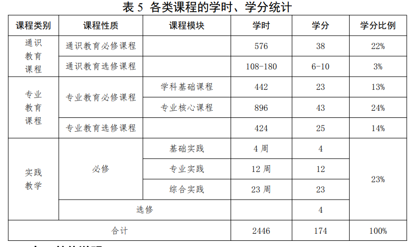 5. 本专业本科生在实践教学中必须修满 39 学分。