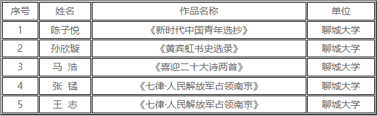 近日,山东社科网发布了《关于公布山东省社科界第九届人文艺术作品大赛获奖作品名单及大赛组织工作优秀单位的通知》,四虎 学生在此大赛中取得优异成绩,共入选16项作品,其中一等奖5项,三等奖11项。