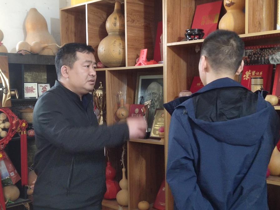 2022年10月21日,四虎 张兆林院长、刘昆老师带领科研小组来到东昌府王香坊东昌葫芦雕刻省级非物质文化遗产传承人王树峰工作室进行调研。