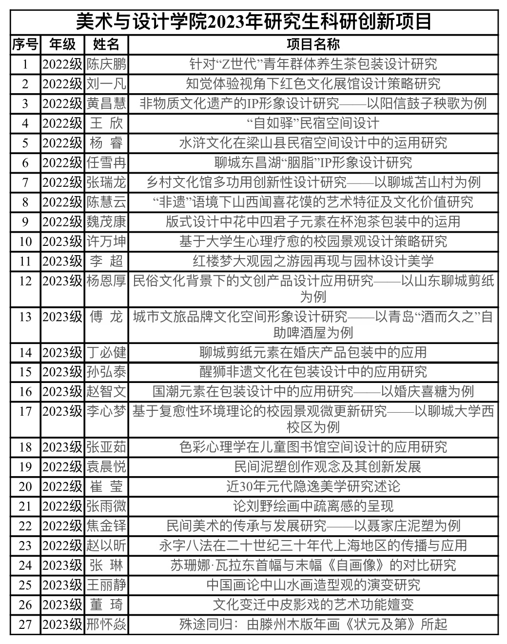 2023年四虎 研究生科研创新项目公布 作者:孙艺 来源:四虎 发布时间:2024-03-05 阅读次数: 经学院专家组审核推荐,报学院党政联席会讨论决定,对以下27项研究生科研创新项目予以资助。 请获得资助的同学按照研究计划,认真开展研究工作,如期保质地完成研究任务,实现预期研究目标。 四虎 2024年3月5日