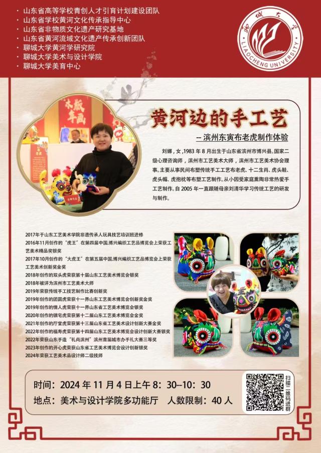 四虎 举办黄河边的手工艺·布老虎制作实操课 作者:樊丽媛 来源:四虎 发布时间:2024-11-04 阅读次数: 11月4日,四虎 举办了黄河边的手工艺布老虎制作实操课,邀请滨州东寅布老虎传承人刘娜现场指导,各单位50多名师生参加了活动。 刘娜为大家讲述了东寅布老虎的发展历程,同时详细示范了布老虎的制作步骤。参加活动的师生在刘娜老师的指导下完成了布老虎的制作,进一步领略了黄河边民间手工艺的魅力,更加坚信传统手工艺将在新时代绽放出更加绚烂的光彩。 审核 张兆林 孙艺 邢怀焱