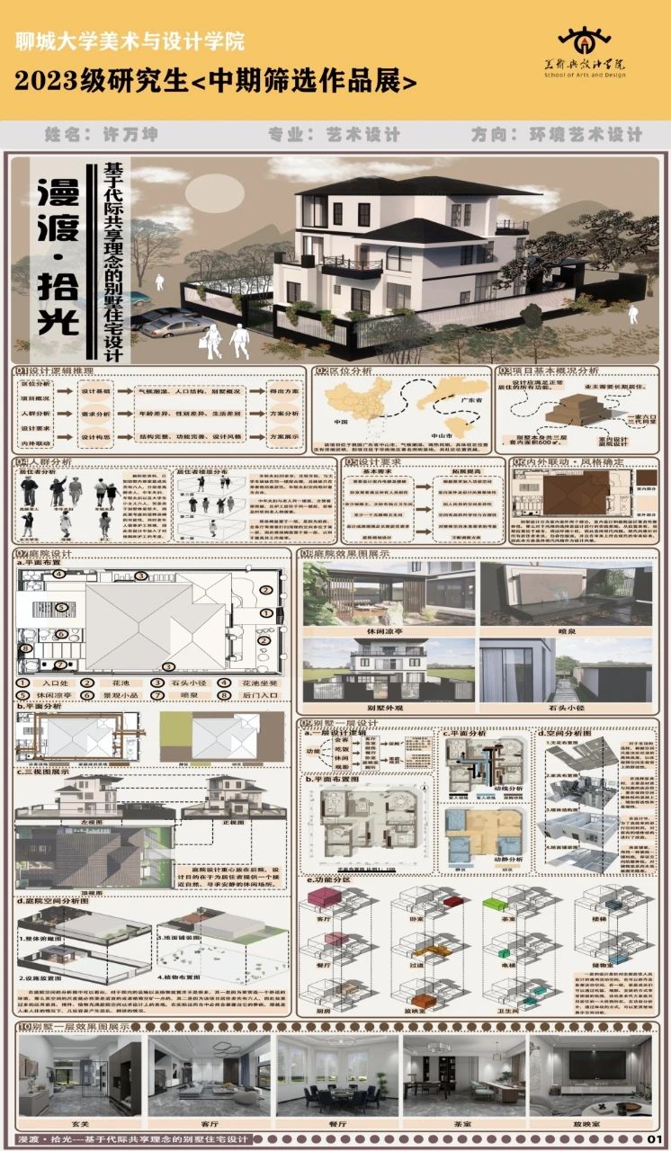 本次设计是基于代际互动领域下的新问题、新需求、新交互,以增强家庭三代间互动沟通为主题,通过对住宅代间区域的研究,将居室划分为共享和私密两个模式,使住宅既能统筹三代共性需求,也能兼顾三代差异化特征,最大化的为不同的人群提供更加丰富多样的选择和更舒适的居家体验。