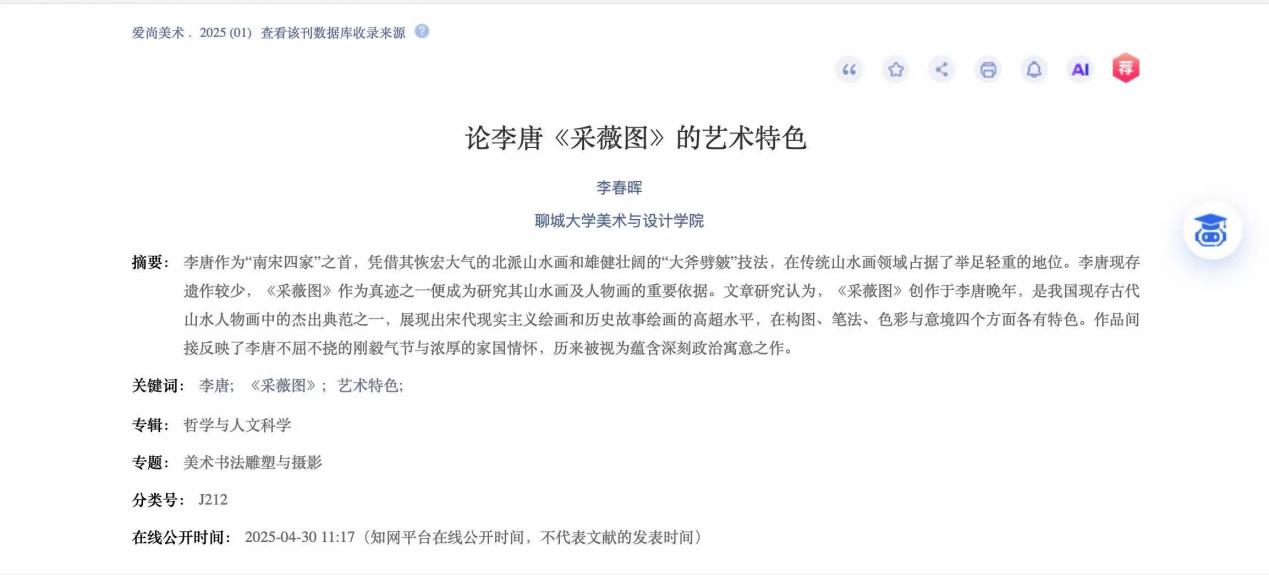 2025年02月论文《论李唐<采薇图>的美学特色》发表于《爱尚美术》。